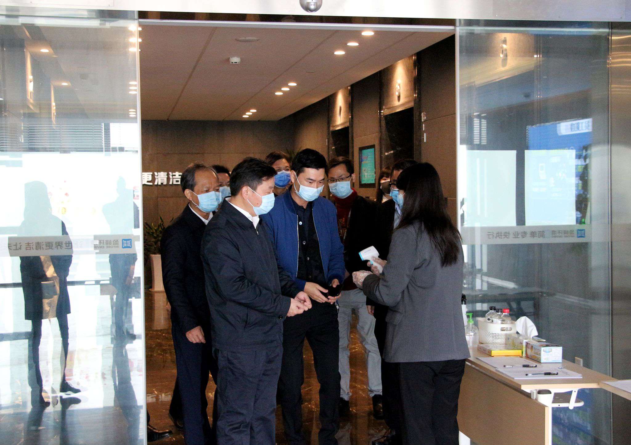 朱伟市长一行到达YABO鸭脖环境,首先配合YABO鸭脖环境的体温检测岗经过了严格的测量后,进入到企业办公区、会议室等区域,就企业的防疫物资、防疫制度文件、员工信息登记台账等情况进行了全面的调研与检查。